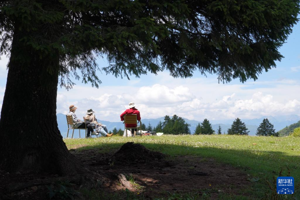 几位游客在舟曲拉尕山上露营游玩(7月12日摄)。新华社记者 马宁 摄