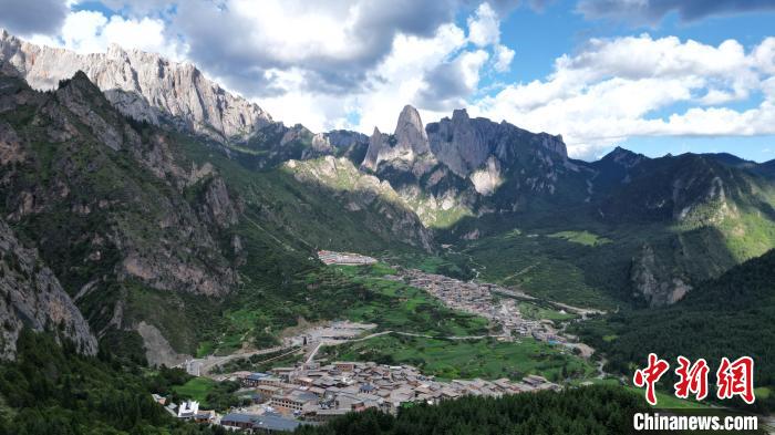 图为航拍视角下的扎尕那景色。(无人机照片)中新社记者 九美旦增 摄