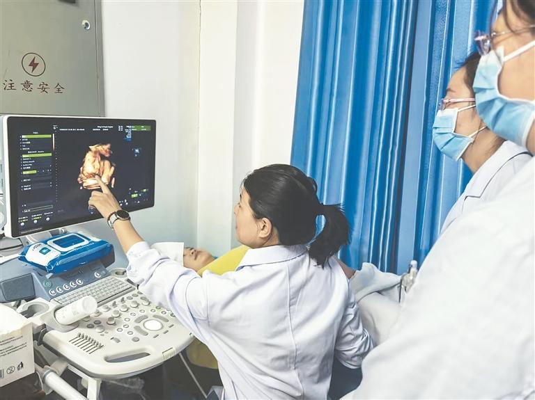 朱悠悠医师为茫崖医务人员讲解三维超声下胎儿面部结构细节,助力提升诊断精准度。冉志敏 摄