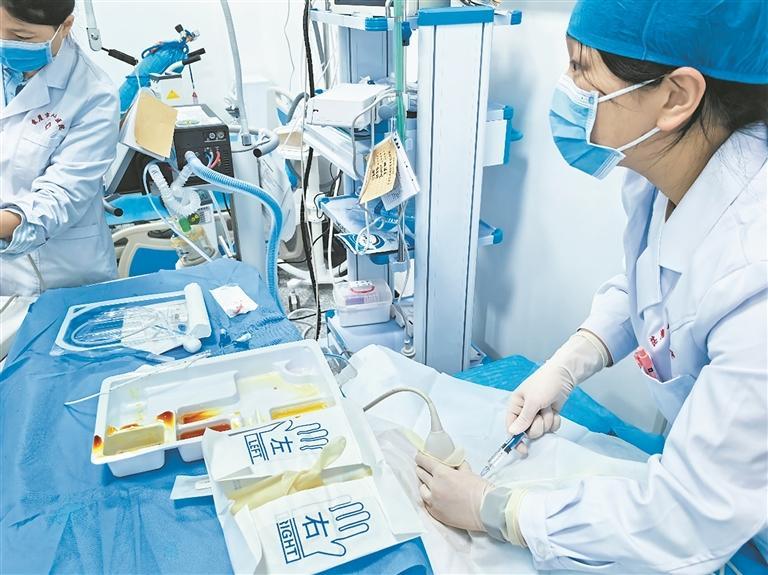浙江台州援青医生徐盼盼正全神贯注为患者穿刺。冉志敏 摄