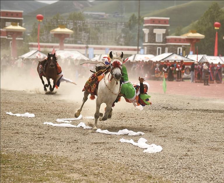 七月的玉树,扎西科草原铺展成绿绒毯,格桑花在风中摇曳,一年一度的玉树赛马会如约而至。