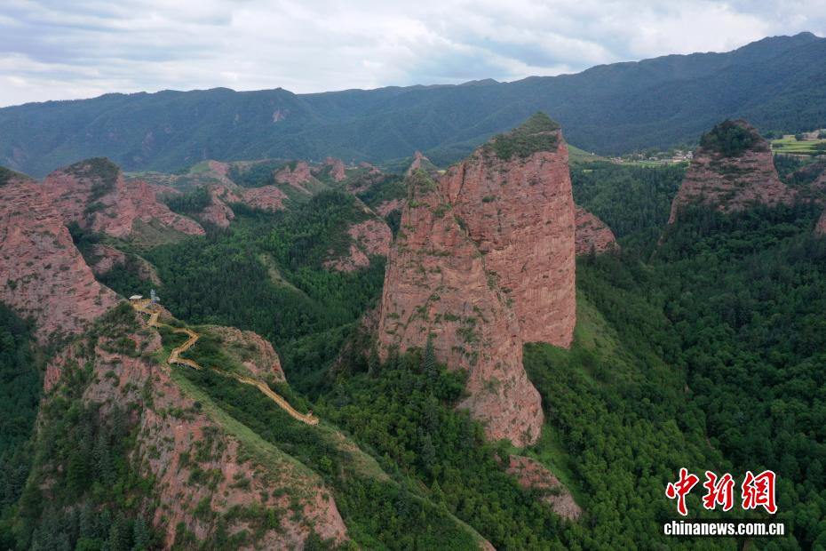 7月23日,航拍坎布拉世界地质公园风光。坎布拉世界地质公园位于青海省黄南藏族自治州,园内共有162处地质遗迹景观点,完整保存了三个重要地质时期的地层构造和印支期、燕山期岩浆活动记录。今年4月,坎布拉正式获批联合国教科文组织世界地质公园称号,成为该省继昆仑山后的第二个世界地质公园。(无人机照片)张忠苹 摄