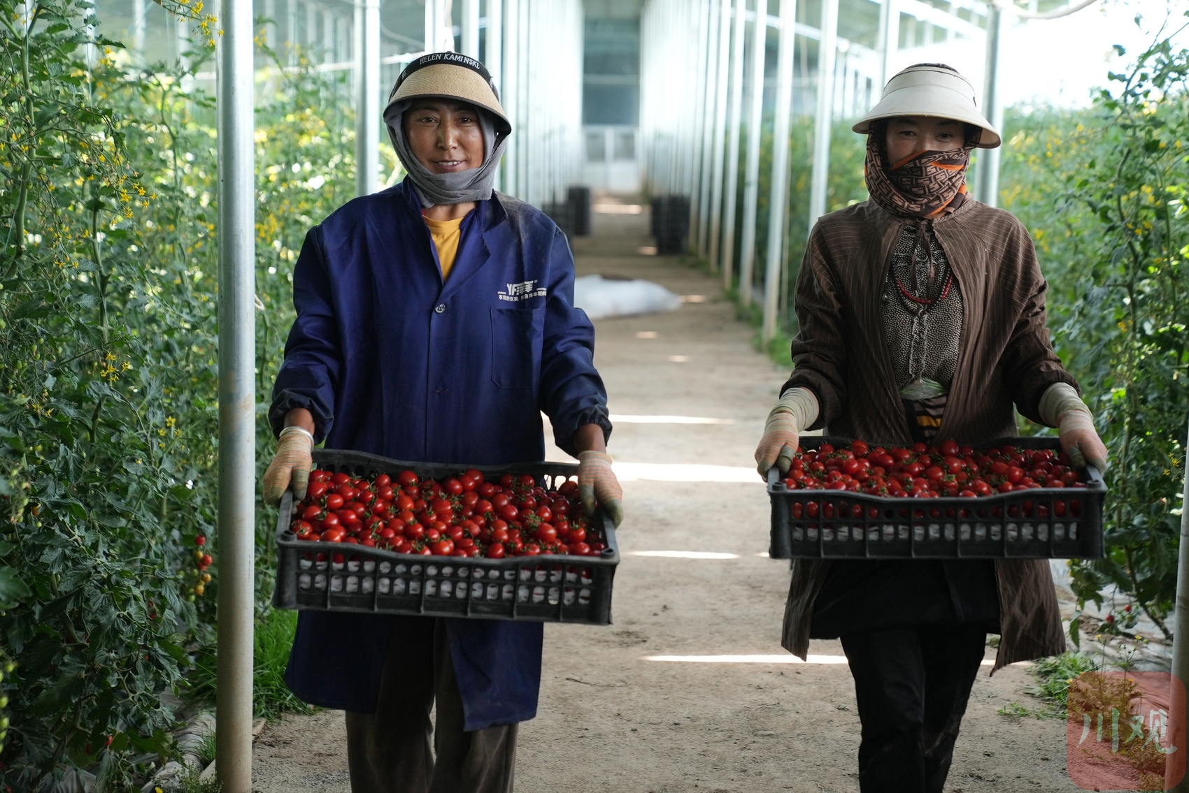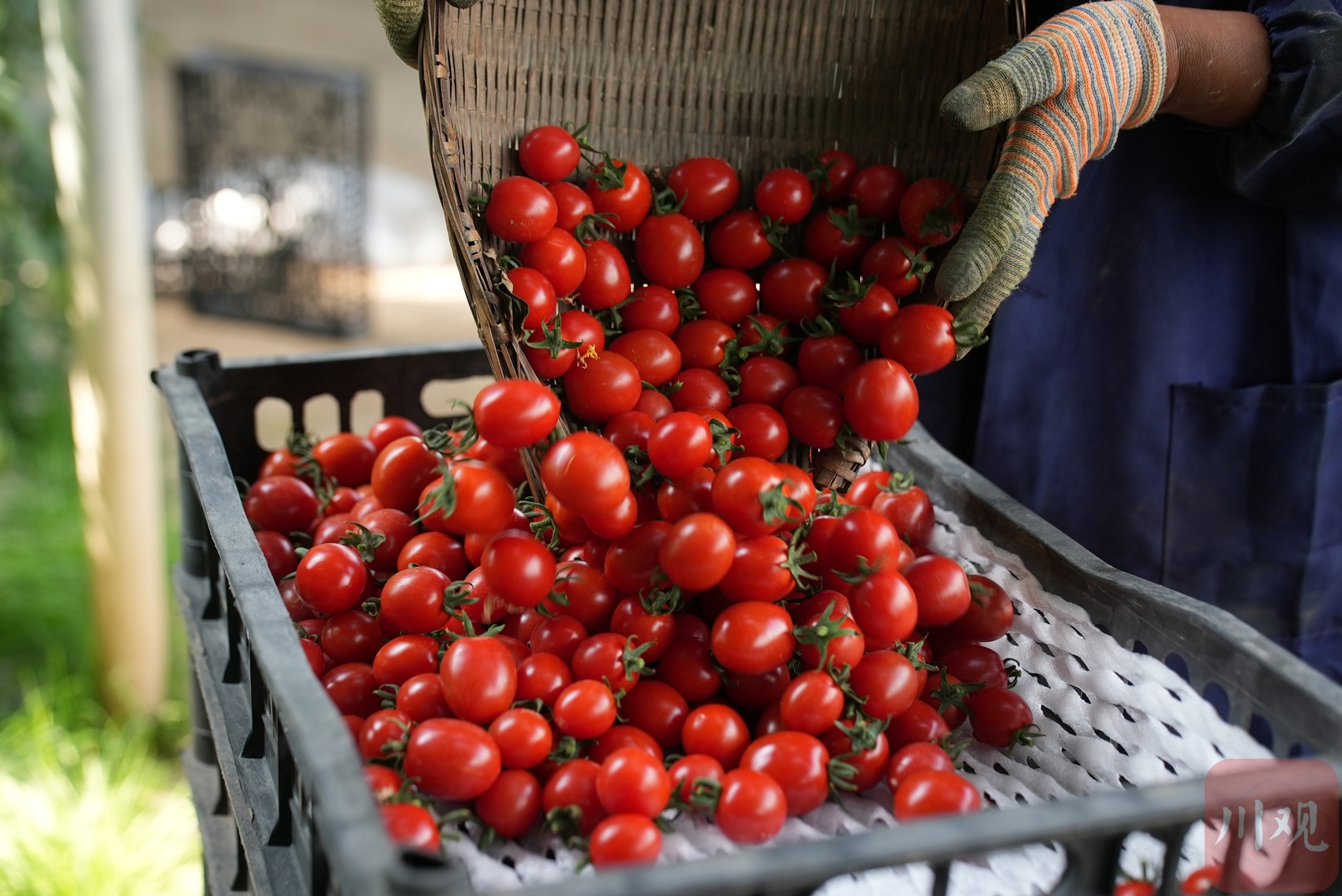 “我们这里产的高原水果小番茄,品质极好。”侯建说,该产业园海拔高达3000多米,是全国少有的高海拔果蔬种植基地。高原独特的气候和水土条件使得种植的水果小番茄口感细腻、带有特别的清香,且甜度高。据介绍,今年该园区的水果小番茄预计产量有30余万斤,主供四川省内高端市场,预计能销售到国庆节前后。