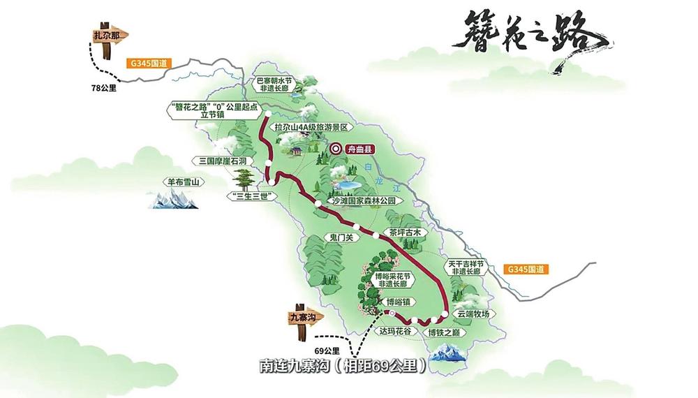 137公里的“簪花之路”,丈量的不只是山川沟壑的物理距离,更是舟曲从 “养在深闺人未识” 到 “一朝绽放耀光华” 的蝶变轨迹。这条路不仅是穿越探险之路、浪漫自由之路、民俗风情之路、生态氧吧之路、和谐交融之路、纯净心灵之路,更是一条生态美、产业兴、百姓富的幸福之路。