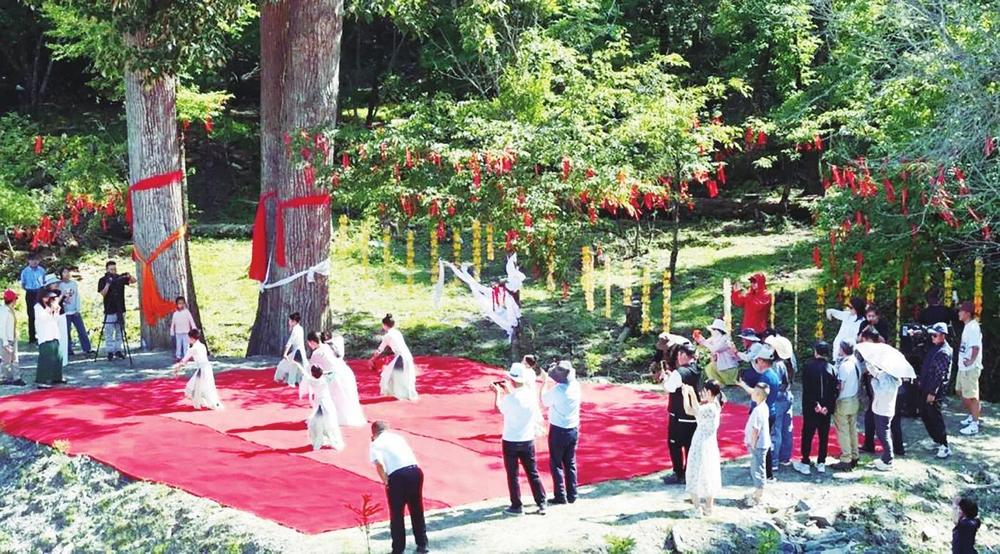在“簪花之路”上的大峪镇香杭村,三棵需两人合抱的白杨树因“达玛女神化树守爱”的动人传说成了网红打卡点。周边配套建设的观景台、故事墙、休憩亭,让游客既能赏古树风姿,又能沉浸式品读那段浪漫的爱情神话。