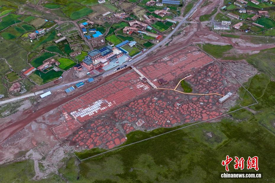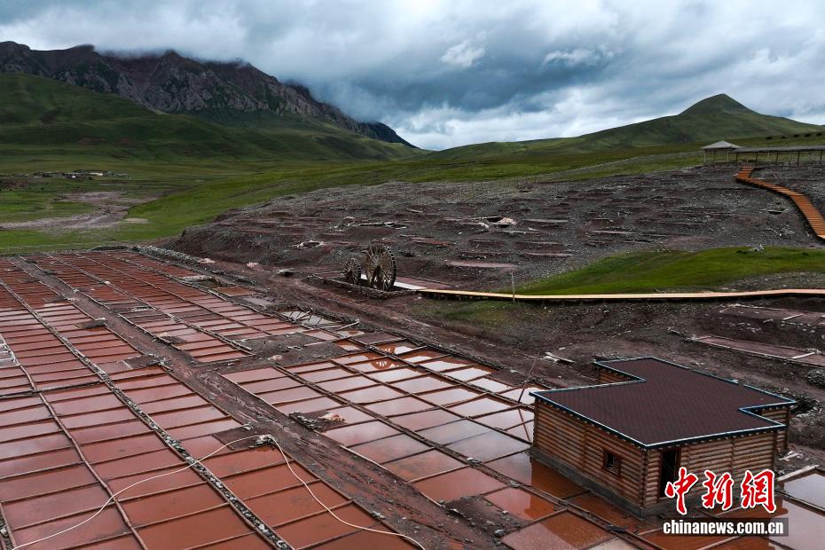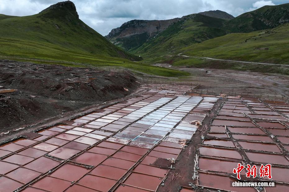 8月22日,航拍位于青海省玉树藏族自治州囊谦县的白扎盐场秋日景色。拥有上千年历史的白扎盐场至今仍沿袭着古老的晒盐、制盐方式,所生产的食盐畅销西藏、四川、甘肃等省区。