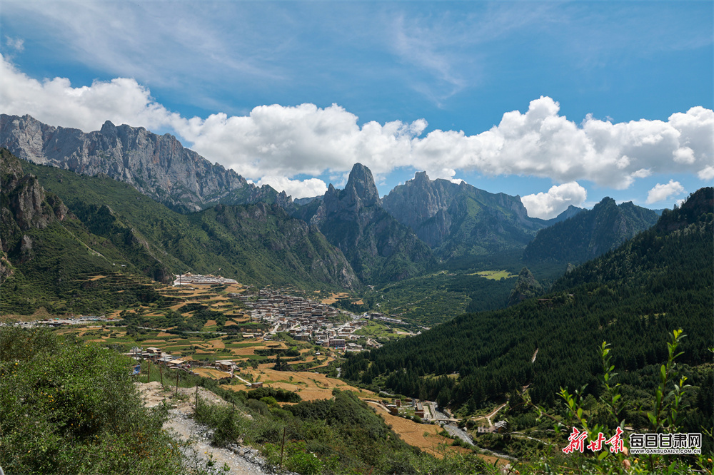 “扎尕那”在藏语里意为“石匣子”,是大自然鬼斧神工的馈赠——高空俯瞰,四座石峰如天然屏障环抱村寨,石林、峭峰、绝壁错落分布,仿佛一座巨型石头城堡守护着这片净土。作为青藏高原东缘的生态秘境,这里平均海拔3000米,森林覆盖率超60%,夏季平均气温稳定在18℃-22℃,负氧离子含量远超平原地区,每一次呼吸都满是草木清香,成为游客逃离酷暑、享受自然的“天然氧吧”。
