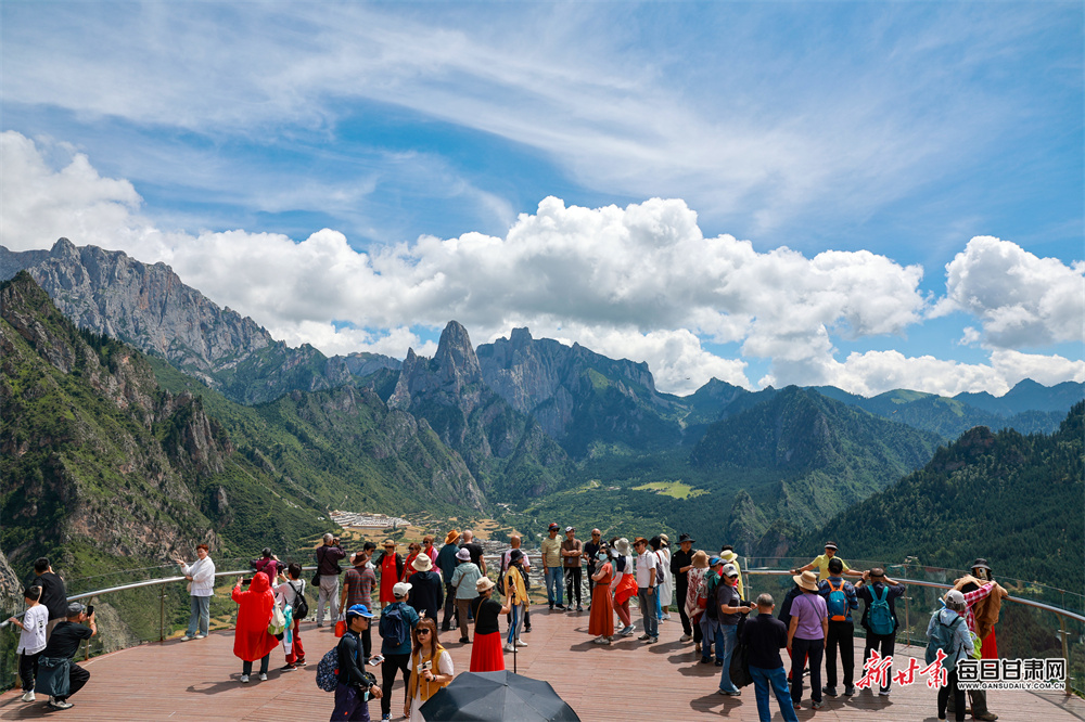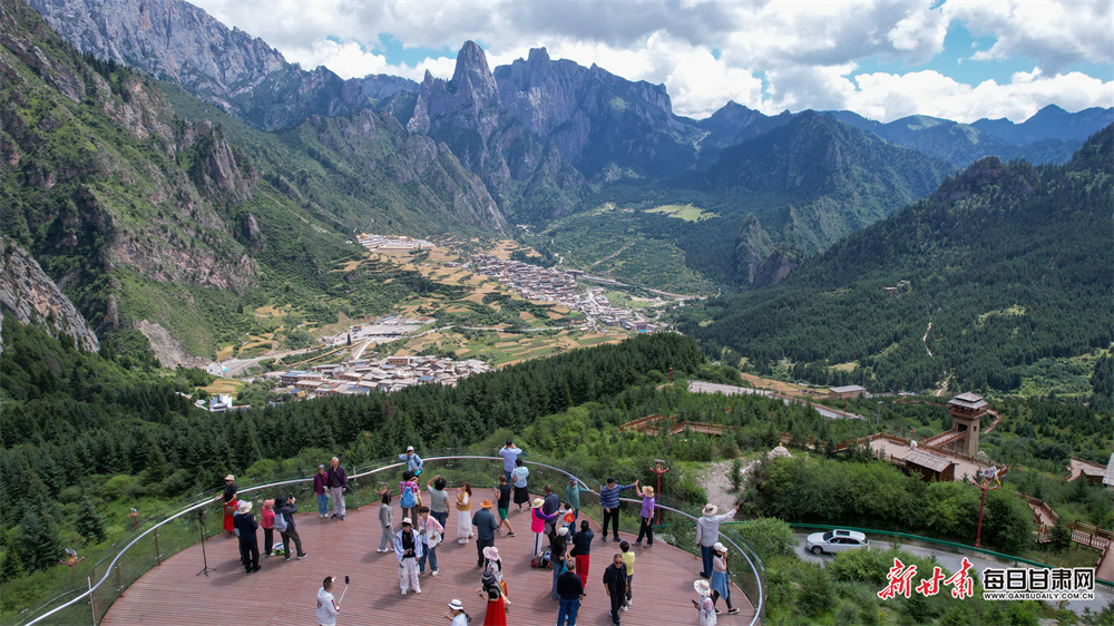 初秋,甘肃省甘南藏族自治州迭部县扎尕那景区迎来旅游热潮。清晨时分,奇峻石峰被轻纱般的云雾缠绕,阳光穿透云层洒向村寨,山林叠翠、石堡巍峨,五彩经幡随风飘动,一幅“人在画中游”的仙境图景徐徐展开,引得游客纷纷驻足拍照,定格这份高原独有的秋日浪漫。