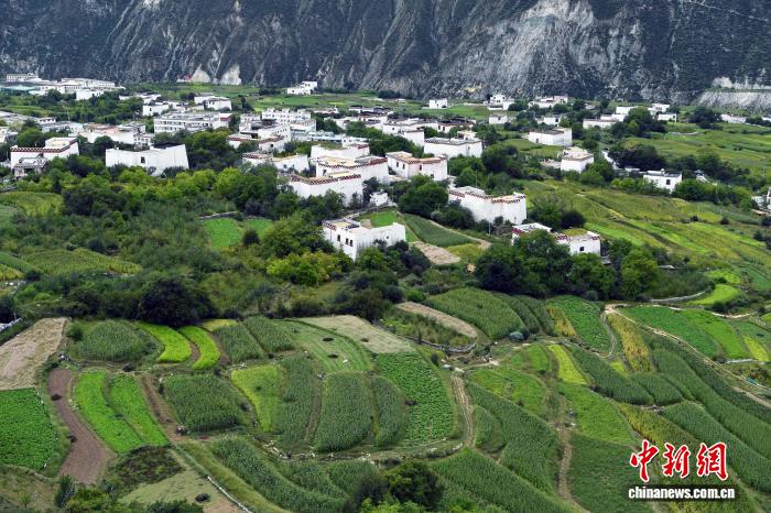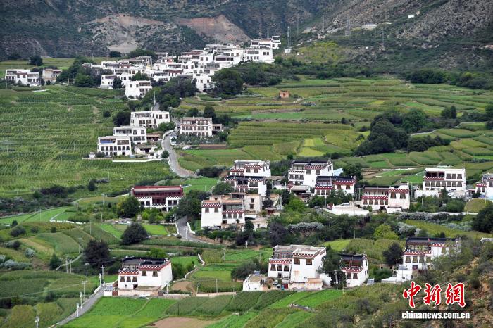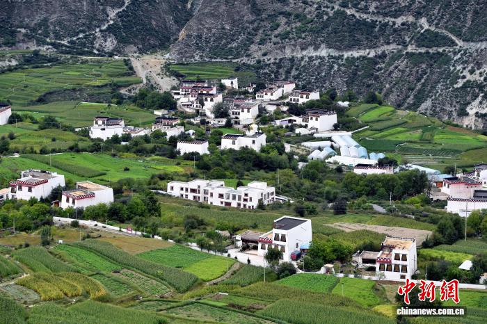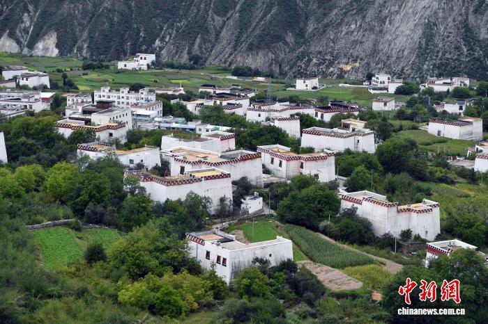 图为8月27日拍摄的乡城县青德镇白藏房建筑群。中新社记者 王磊 摄