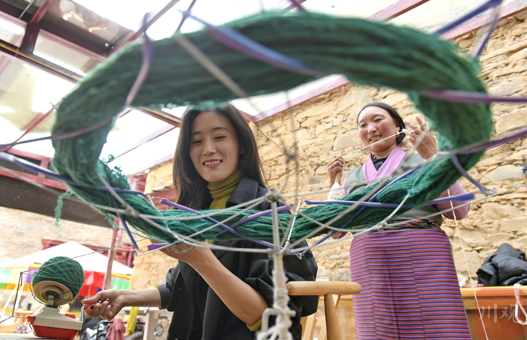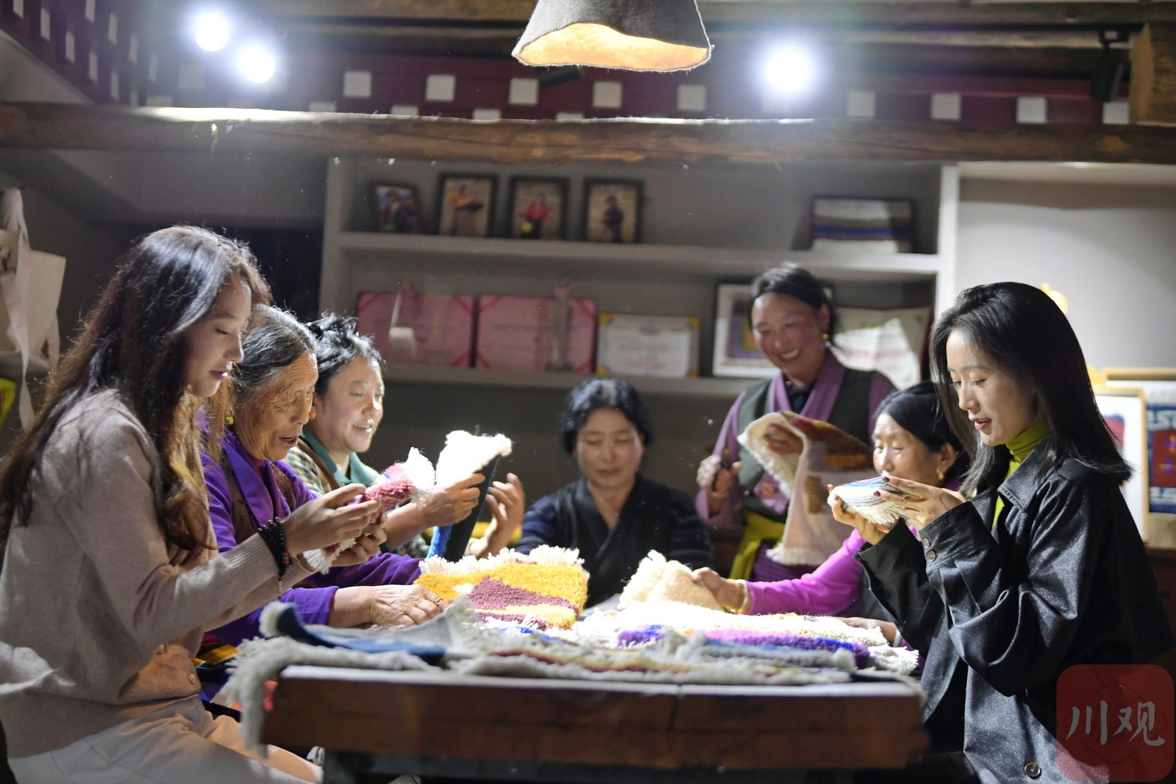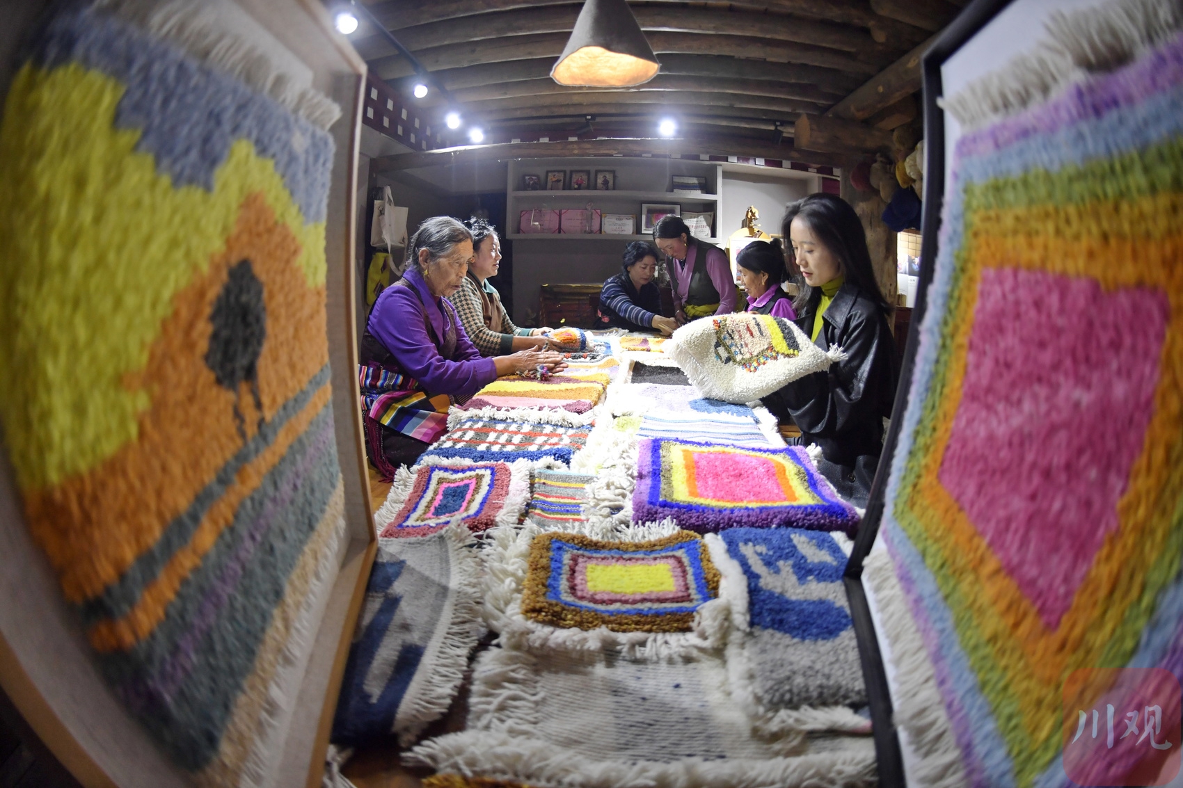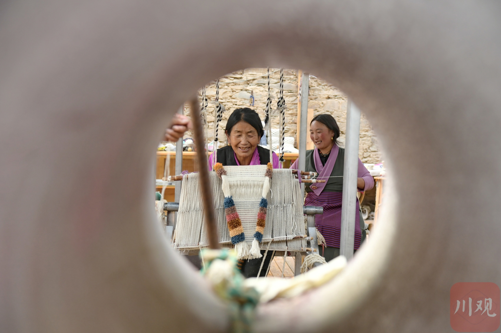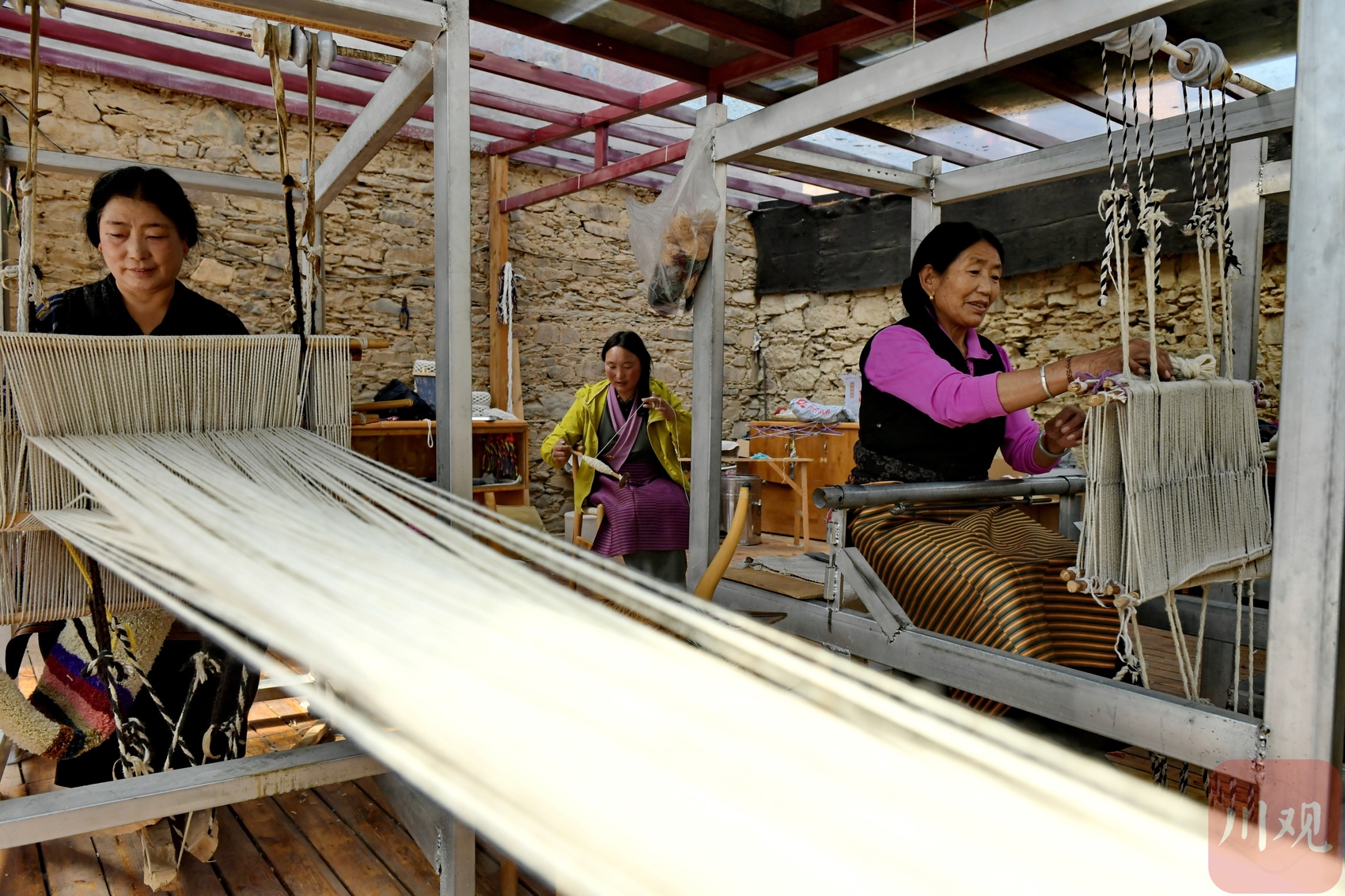 2025年9月3日,在四川省甘孜藏族自治州理塘县“勒通古镇·千户藏寨”旁的“妈妈树”非遗工坊,一群“织女”正在忙着赶制浙江的“妮热”产品订单,有的在盘线团,有的在经线,有的在织毯……现场一片繁忙景象。