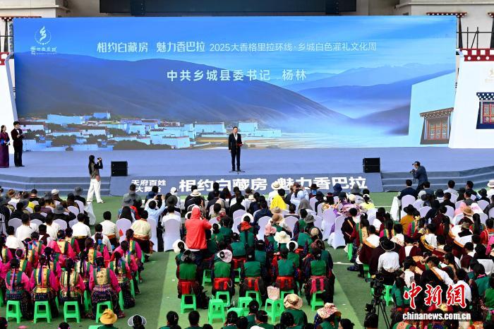 在白云掩映、群山环绕的四川省甘孜藏族自治州乡城县,由中共乡城县委、乡城县人民政府主办,以“相约白藏房 魅力香巴拉”为主题的2025大香格里拉环线·乡城白色灌礼文化周20日正式拉开帷幕。