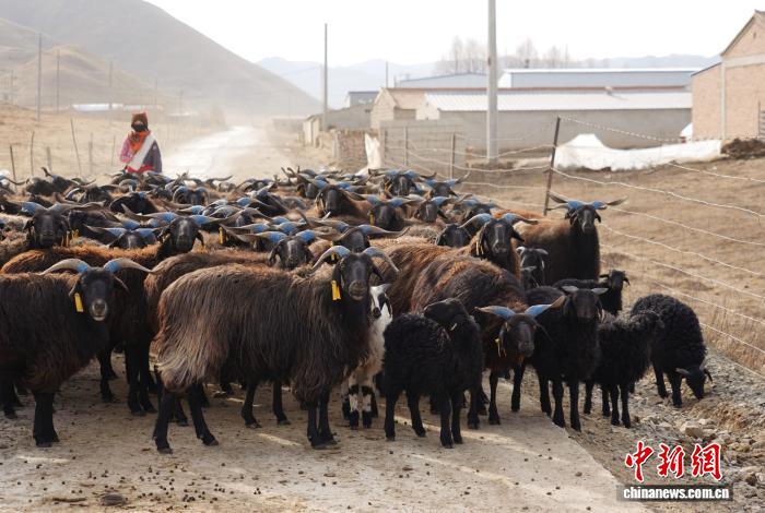 资料图为青海省海南藏族自治州贵南县黑藏羊繁育中心内的拍摄的黑藏羊。马铭言摄