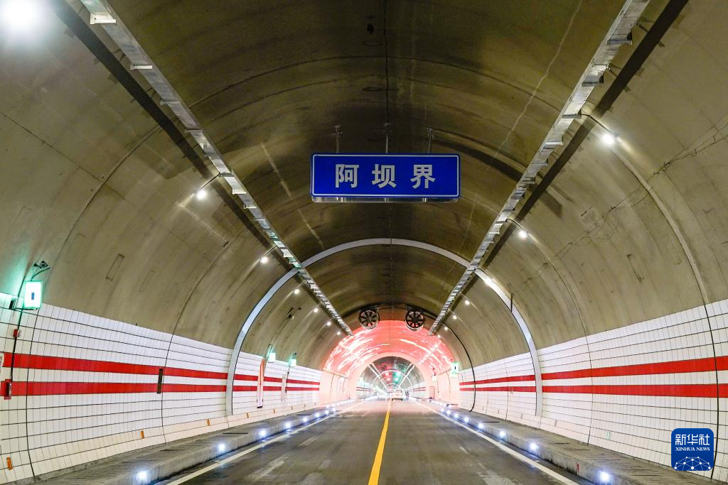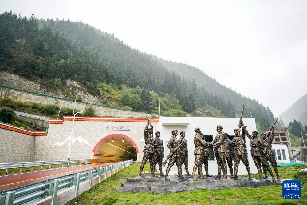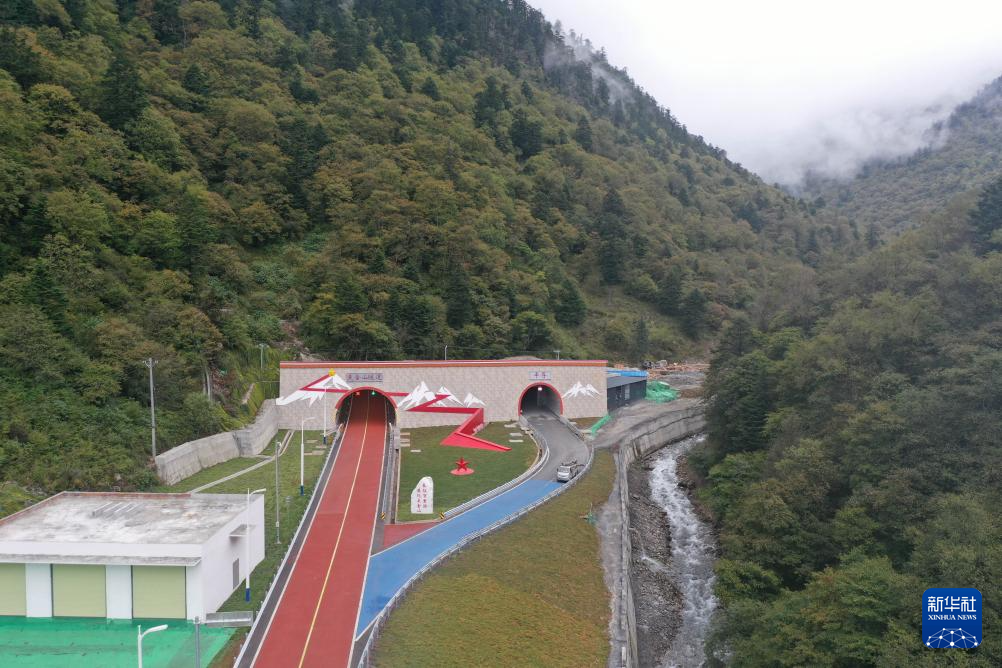 9月28日拍摄的国道351线夹金山隧道宝兴县境内入口。新华社记者 胥冰洁 摄