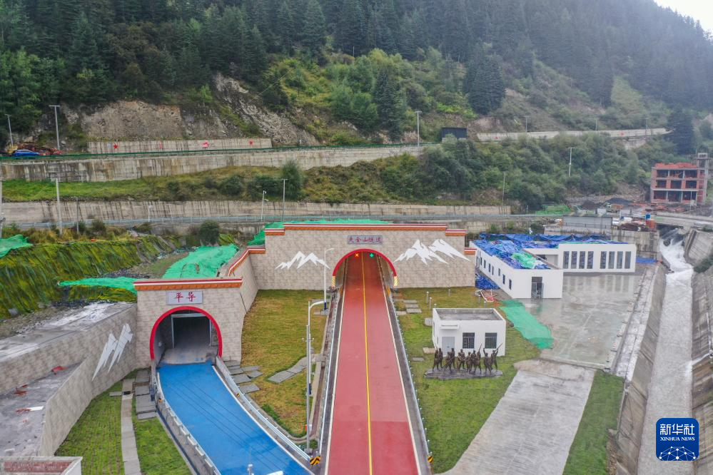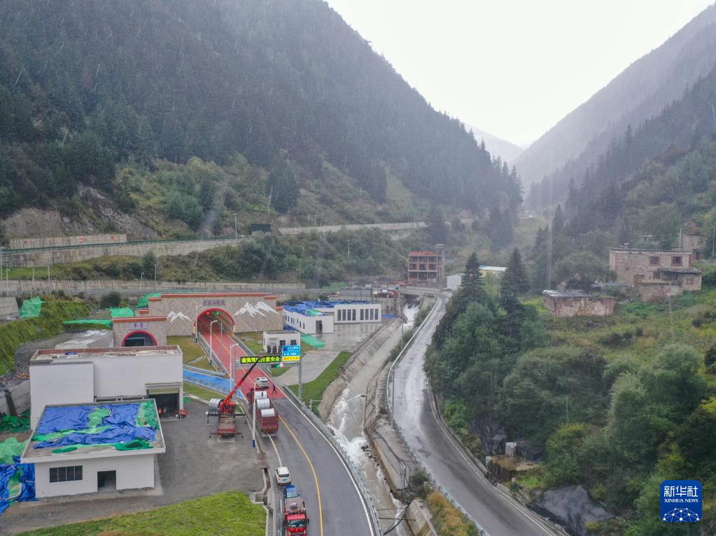 这是9月28日在四川省小金县拍摄的夹金山隧道出口(无人机照片)。新华社记者 王曦 摄