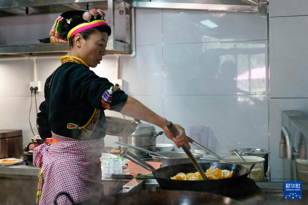 10月8日,能卡曼在藏家乐为游客准备午餐。新华社记者 胥冰洁 摄