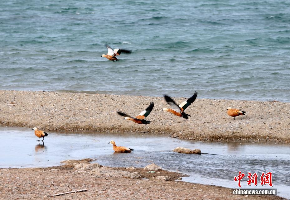 11月16日,青海省海南藏族自治州共和县青海湖二郎剑景区,陆续迁徙而至的候鸟在青海湖湿地内飞翔、觅食。近期,随着迁徙季的到来,各种候鸟已经陆续结队抵达青海湖国家级自然保护区。据青海湖国家级自然保护区管理局保护科提供数据,青海湖保护区观察记录的鸟类已达282种,其中水鸟102种。