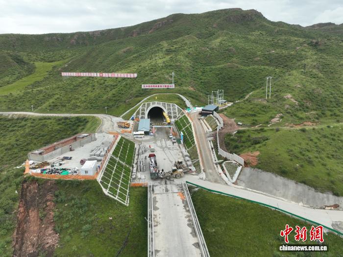 9月9日,航拍下的西成铁路(甘青段)1标格尔隧道出口。王攀峰 摄
