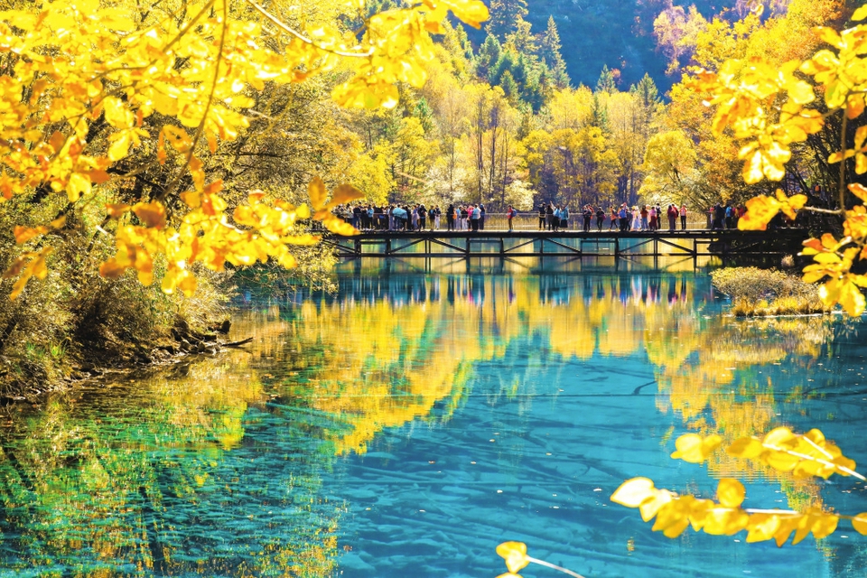 游客在九寨沟游览。九寨沟景区管理局供图