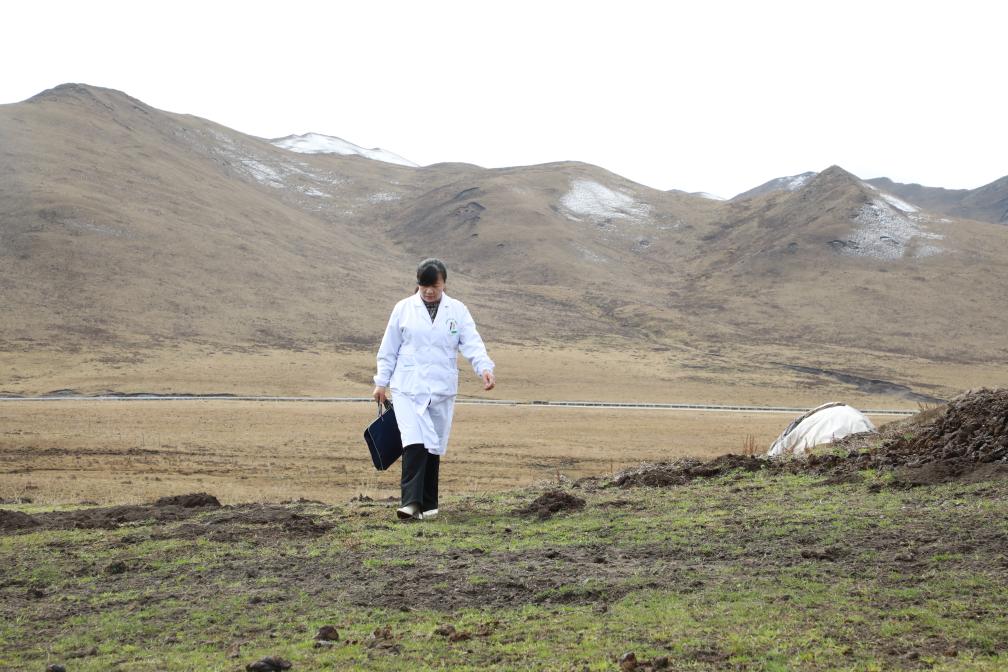 这天,王蒋艳乘车来到60公里外的藏族牧民索南草家中。从县城到牧场的路面坑洼不平,牛羊不时“阻断”去路,往返一趟常常耗费大半天。