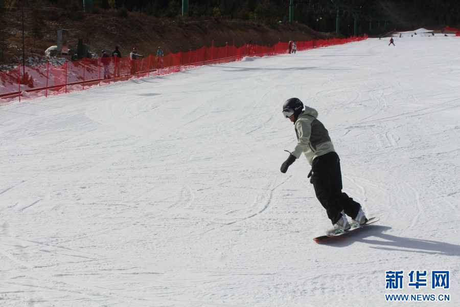 游客在七星雪滑雪场体验滑雪(12月15日摄)。新华网发