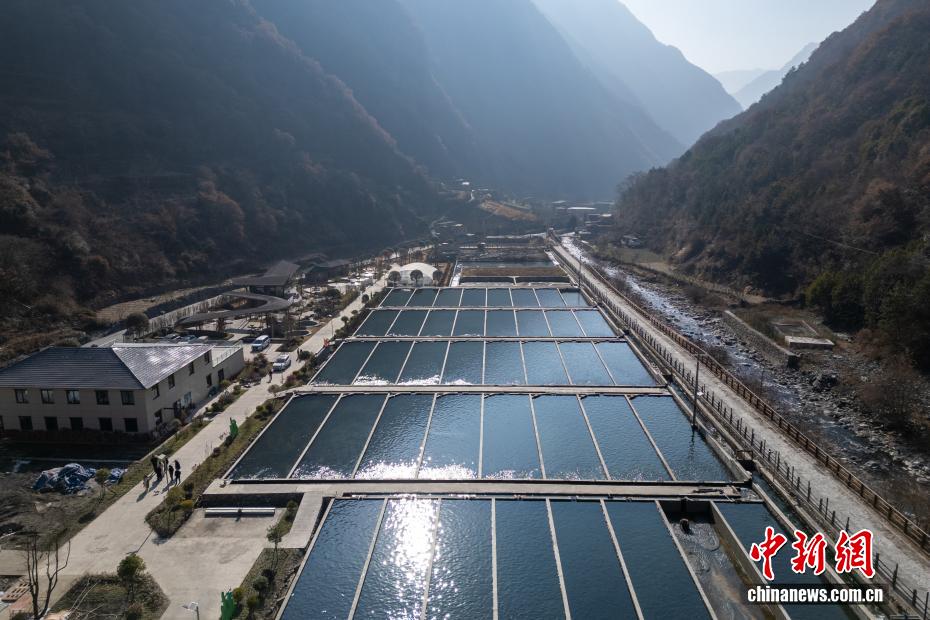 12月26日,位于四川省阿坝州理县薛城镇甲米村的高原特色冷水鱼养殖基地内,工作人员进行管护作业。该基地处于海拔超2000米的孟屯河畔,水源来自高海拔地区的雪山融水,年均水温9-10℃,目前养殖有鳟鱼、黄河鱼、雅鱼等10万余尾。基地将优良生态资源与现代养殖技术结合,通过“鱼经济”发展,丰富业态、增加就业、农旅融合壮大了该村集体经济,同时拓宽了村民增收致富渠道。(无人机照片)