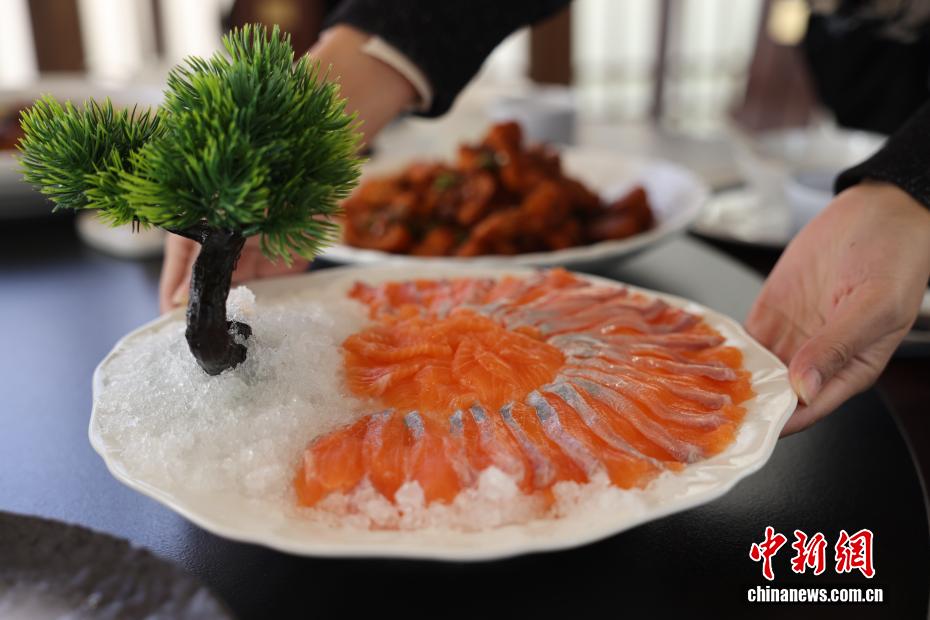 12月26日,位于四川省阿坝州理县薛城镇甲米村的高原特色冷水鱼养殖基地内,工作人员展示当日打捞的虹鳟鱼鱼片。该基地处于海拔超2000米的孟屯河畔,水源来自高海拔地区的雪山融水,年均水温9-10℃,目前养殖有鳟鱼、黄河鱼、雅鱼等10万余尾。基地将优良生态资源与现代养殖技术结合,通过“鱼经济”发展,丰富业态、增加就业、农旅融合壮大了该村集体经济,同时拓宽了村民增收致富渠道。