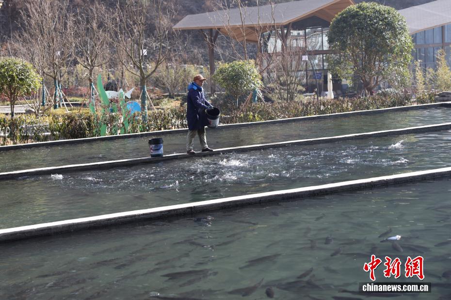12月26日,位于四川省阿坝州理县薛城镇甲米村的高原特色冷水鱼养殖基地内,工作人员进行喂料作业。该基地处于海拔超2000米的孟屯河畔,水源来自高海拔地区的雪山融水,年均水温9-10℃,目前养殖有鳟鱼、黄河鱼、雅鱼等10万余尾。基地将优良生态资源与现代养殖技术结合,通过“鱼经济”发展,丰富业态、增加就业、农旅融合壮大了该村集体经济,同时拓宽了村民增收致富渠道。