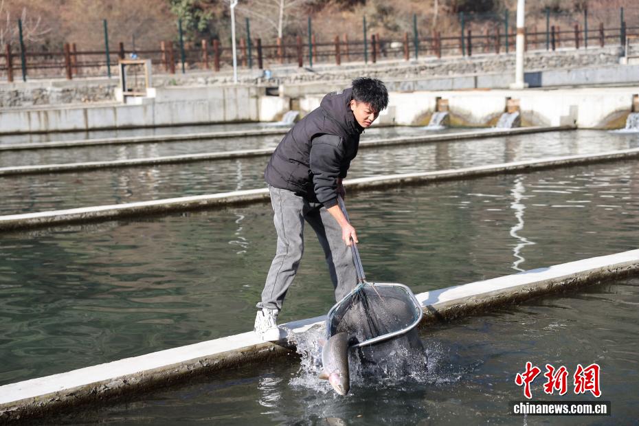 12月26日,位于四川省阿坝州理县薛城镇甲米村的高原特色冷水鱼养殖基地内,工作人员查看鳟鱼生长情况。该基地处于海拔超2000米的孟屯河畔,水源来自高海拔地区的雪山融水,年均水温9-10℃,目前养殖有鳟鱼、黄河鱼、雅鱼等10万余尾。基地将优良生态资源与现代养殖技术结合,通过“鱼经济”发展,丰富业态、增加就业、农旅融合壮大了该村集体经济,同时拓宽了村民增收致富渠道。