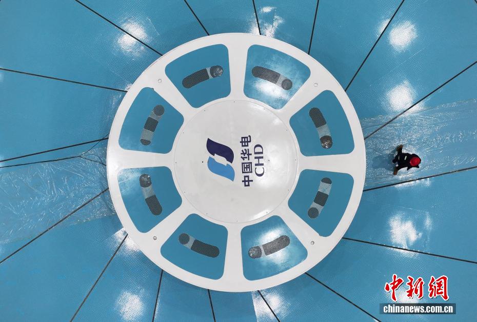 12月27日,中国在建海拔最高双曲拱坝电站——叶巴滩水电站首批机组正式投产发电。叶巴滩水电站位于四川省甘孜州白玉县与西藏自治区贡觉县交界的金沙江干流上。水电站总装机容量224万千瓦,此次首批投产发电的机组为4号和3号机组。图为12月26日,工作人员从4号机组旁经过。(无人机照片)