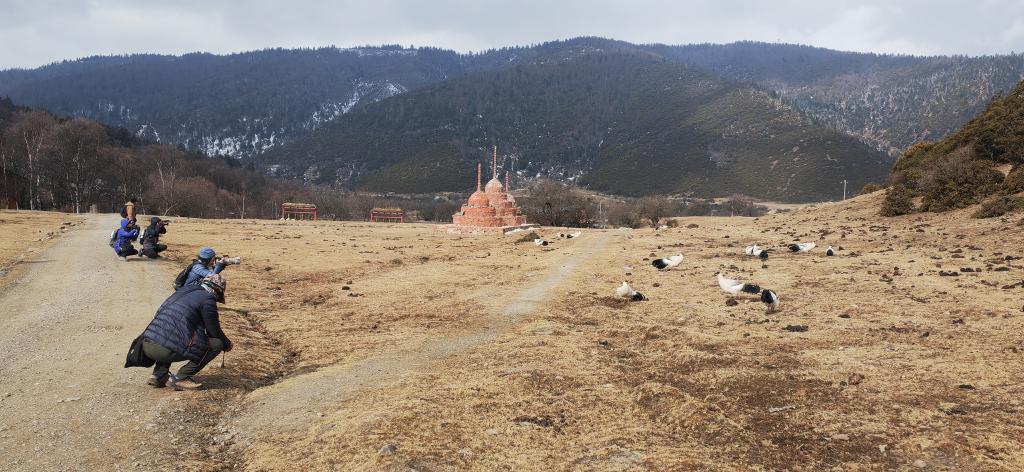 游客在普达措景区内拍摄藏马鸡。新华社记者 浦超 摄