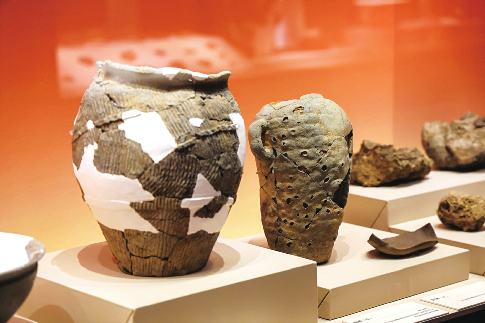 从“寻迹”,到“初识”,再到“源流”……穿梭在展厅,三大核心篇章串联起丰富展品。其中,既有考古工具、日记等寻迹遗存,也有房址、灶、陶窑等聚落遗迹;既涵盖石斧、穿孔石刀、骨梗石刃刀等农耕狩猎工具,也包含彩陶、玉器、骨珠、陶镯等精美器物。