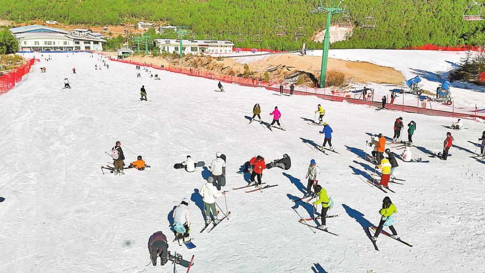 香格里拉七星雪滑雪场一片欢腾。