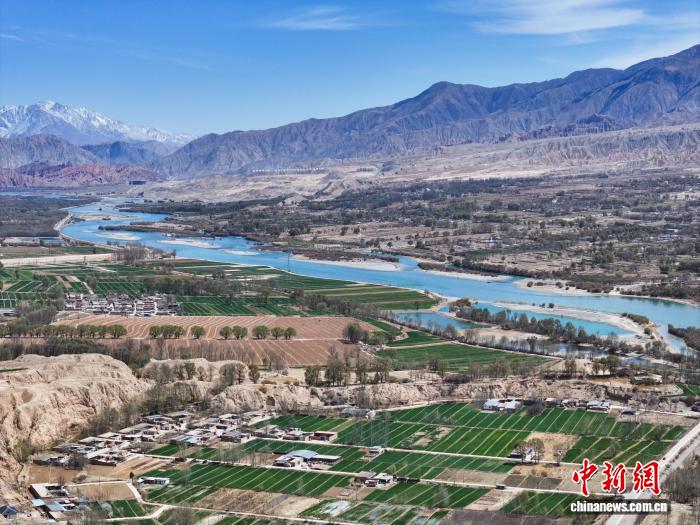 资料图为2025年4月12日,青海省贵德县黄河岸畔春意盎然。(无人机照片) 马铭言摄