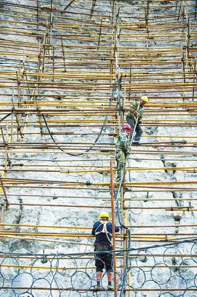 工程人员正在九寨沟县开展地质灾害隐患整治工作,对山坡进行加固。视觉四川 杨树 摄
