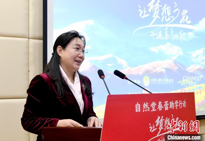 西藏自治区妇女联合会家庭和儿童工作部部长李国英在发言中表示,西藏自治区妇联自1994年以来连续30年实施“春蕾计划”,帮助近万名困难女生实现了上学梦。今年的自然堂春蕾助学行动,西藏自治区获赠160万元,品学兼优的女学生得到资助,也彰显了企业的社会责任。