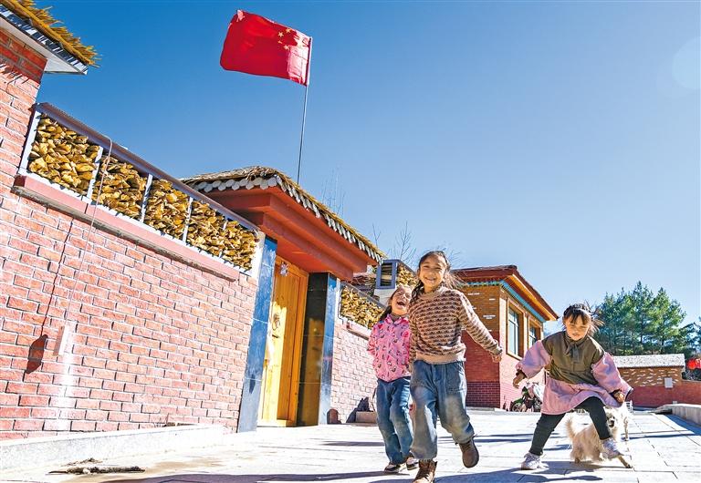 达曼新村的孩子们在玩耍。新华社记者 丁增尼达 摄