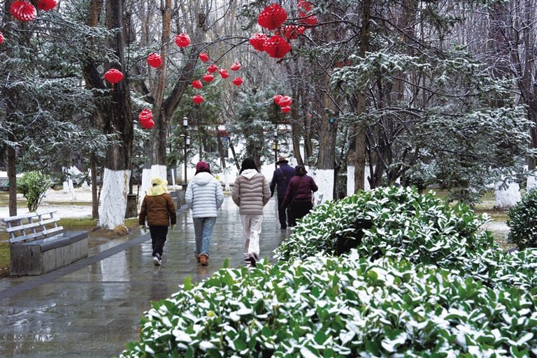 四月,原该是杏花微雨的季节,而拉萨却意外地飘起了雪花。突如其来的一场春雪让不少人重新裹上了厚厚的棉服,同时,也给这座古老的城市换上了与众不同的“春装”。