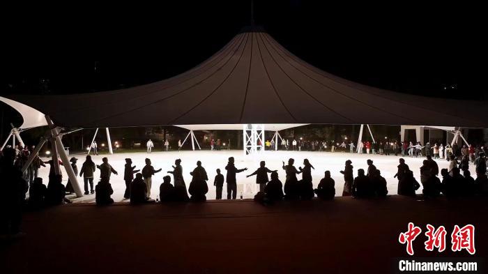 图为当地民众在达孜区社会主义核心价值观主题公园跳锅庄舞。达孜区委宣传部供图