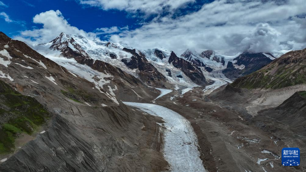 空中俯瞰祥格拉冰川(7月20日摄,无人机照片)。新华社记者 晋美多吉 摄