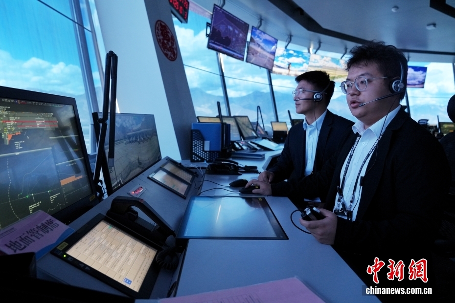 2025年是西藏自治区成立60周年,也是西藏民航通航60周年。在民航空管领域,管制员肩负指挥飞机运行、保障飞行安全等重要职责,具体分为区域管制员、塔台管制员等角色。在位于拉萨贡嘎国际机场的民航西藏空管中心,59名汉族和18名藏族管制员通力合作,以“老带新”“传帮带”,在守护蓝天的岗位上谱写了汉藏一家亲的故事。图为7月22日拍摄的民航西藏空管中心塔台。中新社记者 张祥毅 摄