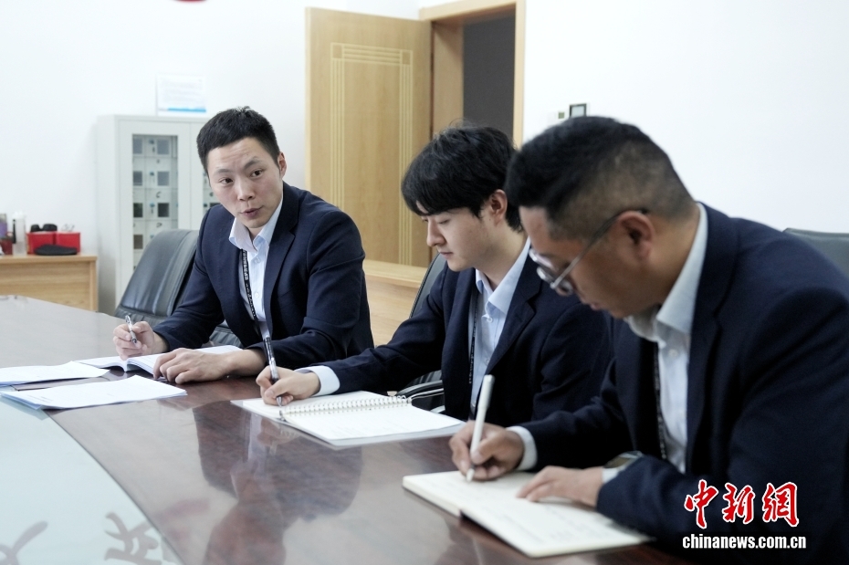 2025年是西藏自治区成立60周年,也是西藏民航通航60周年。在民航空管领域,管制员肩负指挥飞机运行、保障飞行安全等重要职责,具体分为区域管制员、塔台管制员等角色。在位于拉萨贡嘎国际机场的民航西藏空管中心,59名汉族和18名藏族管制员通力合作,以“老带新”“传帮带”,在守护蓝天的岗位上谱写了汉藏一家亲的故事。图为7月22日,西藏空管中心区域管制带班主任张斌(左)与管制员强旦(右,藏族)、见习管制员王轩(中)召开班前讲评,提示当日地区空域内的注意事项、管制要点。中新社记者 张祥毅 摄