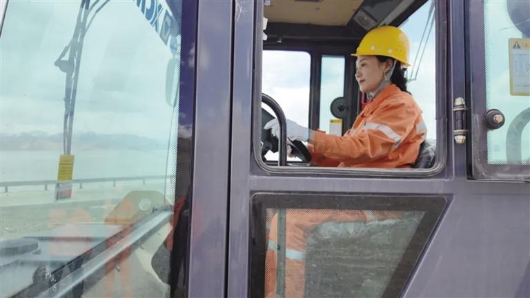 每当她看到滞留在风雪中的车队缓缓通过,司机们鸣笛致意的瞬间,所有的艰辛都化作了骄傲。大型机械全能操作手卓玛措姆,已成长为绽放在雪域高原“天路”上的一朵美丽的“钢铁玫瑰”。