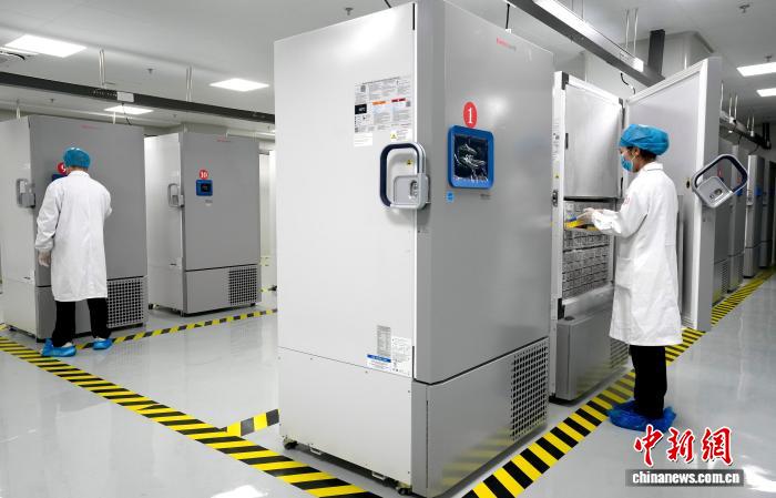 图为工作人员把样本处理完后放入超低温冰箱。李林 摄