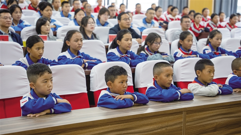 拉萨市第四高级中学思政办副主任达瓦欧珠表示:“组织学生‘同上一堂思政课’,将不同学段的孩子凝聚在一起,这种联动性学习极具力量。对小学生而言,能在生动的故事里播下爱国的种子;对初高中生来说,则能在更深入的探讨中体会理想信念的分量,让铸牢中华民族共同体意识有了最鲜活的传承载体。”