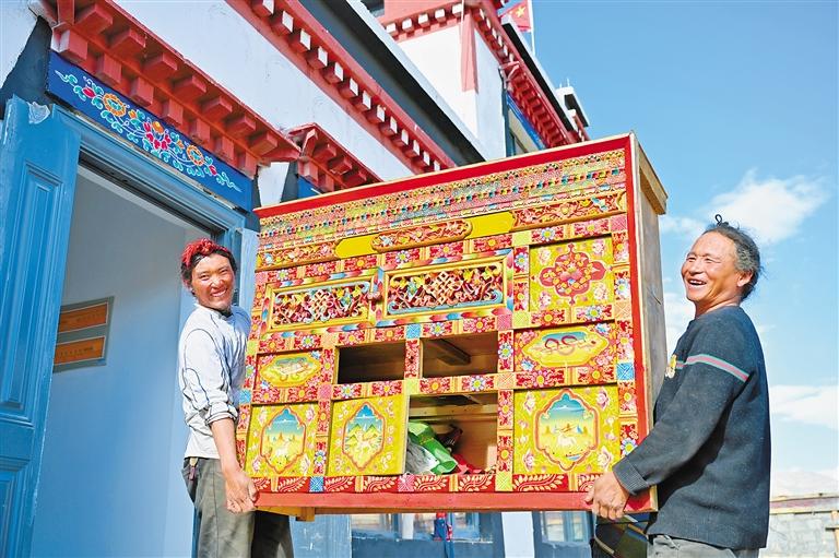 定结县野江村村民往新居里搬家具。记者 平措次仁 摄