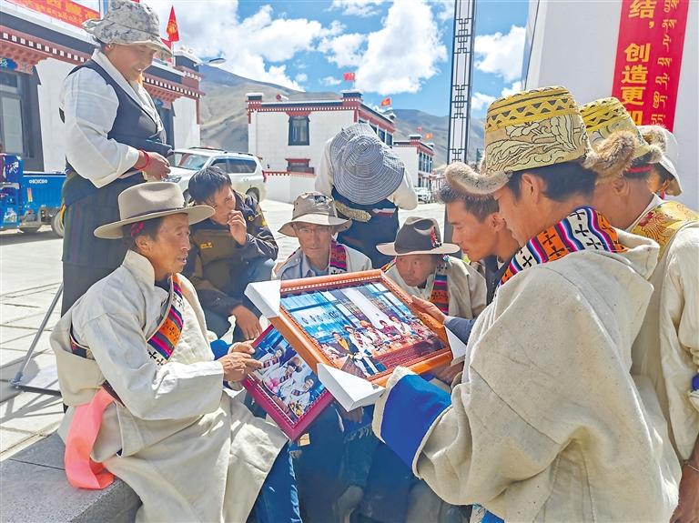 群众在昂仁县分会场拍照留念。记者 马晓艳 摄