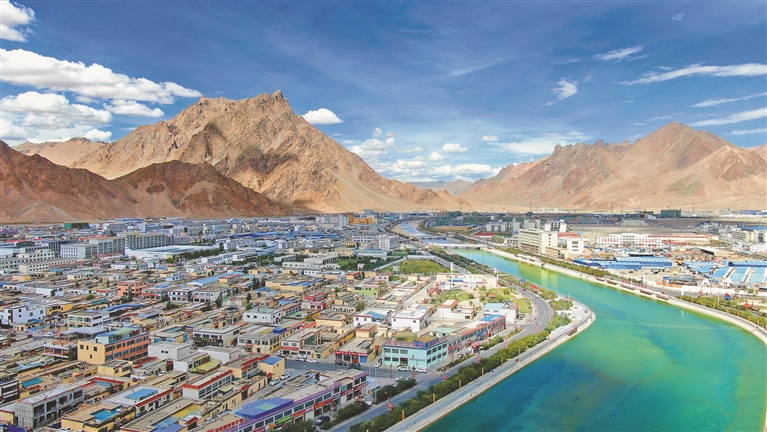图为绿意环绕的狮泉河镇。记者 洛桑旦增 达珍 永青 摄