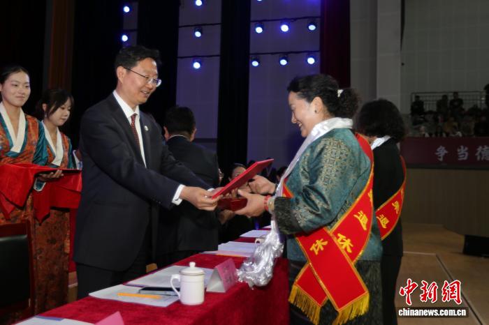 图为为退休教师颁发退休证。西藏大学 供图