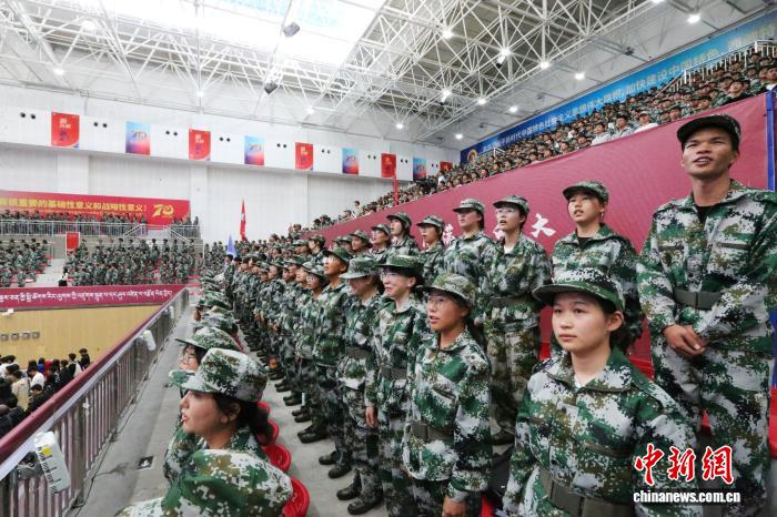 图为身穿军训服的新生。西藏大学 供图