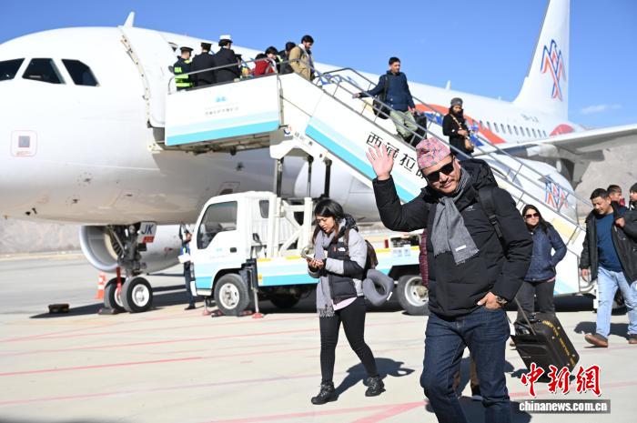 图为2023年12月,拉萨贡嘎国际机场迎国际旅客。赵朗 摄